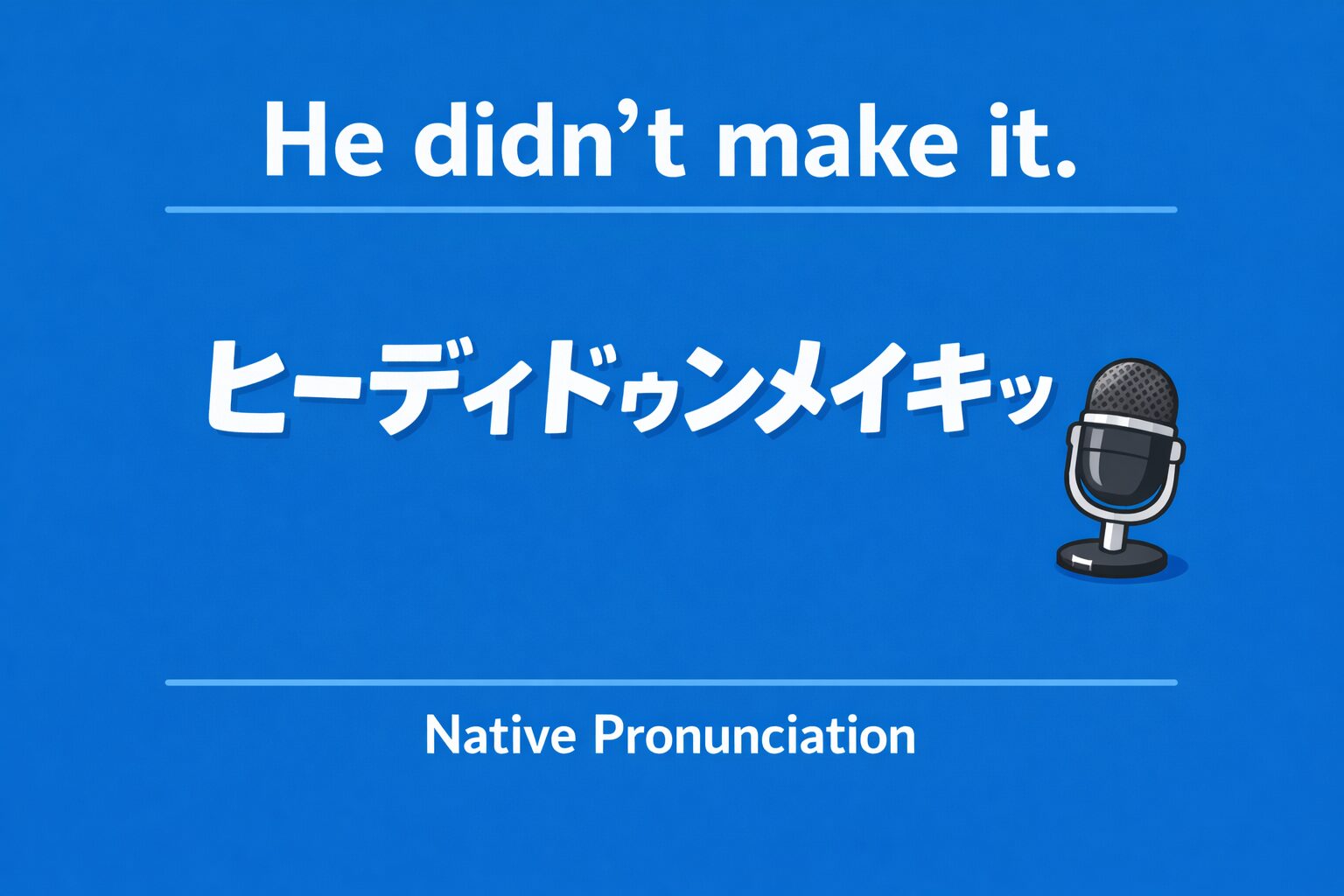 ネイティブの発音では「ヒーディドゥンメイキッ」に聞こえます。「didn’t」の語末の「t」が消え、「make it」が「メイキッ」となるのが特徴です。